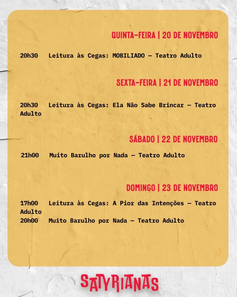 Confira a programação completa satyrianas.com.br